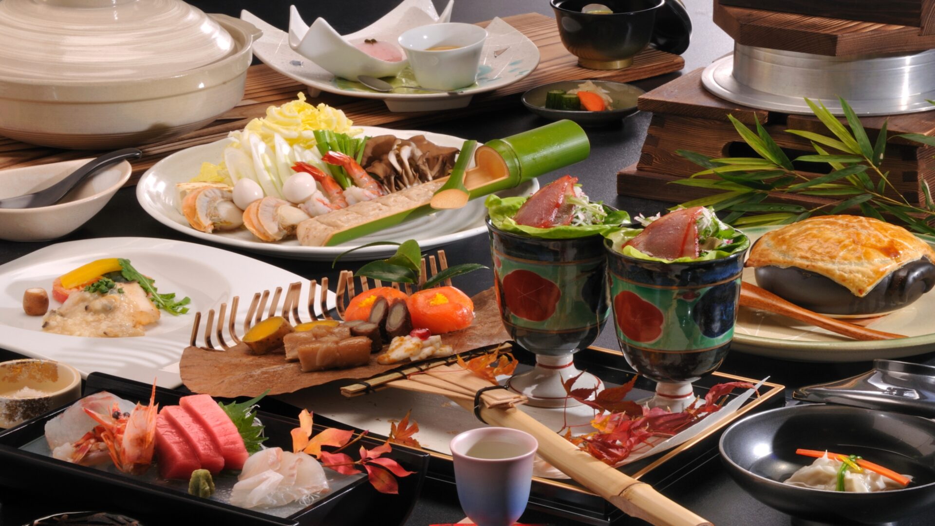 夕食は、伊豆近海の新鮮な海の幸をふんだんに使った創作懐石料理。